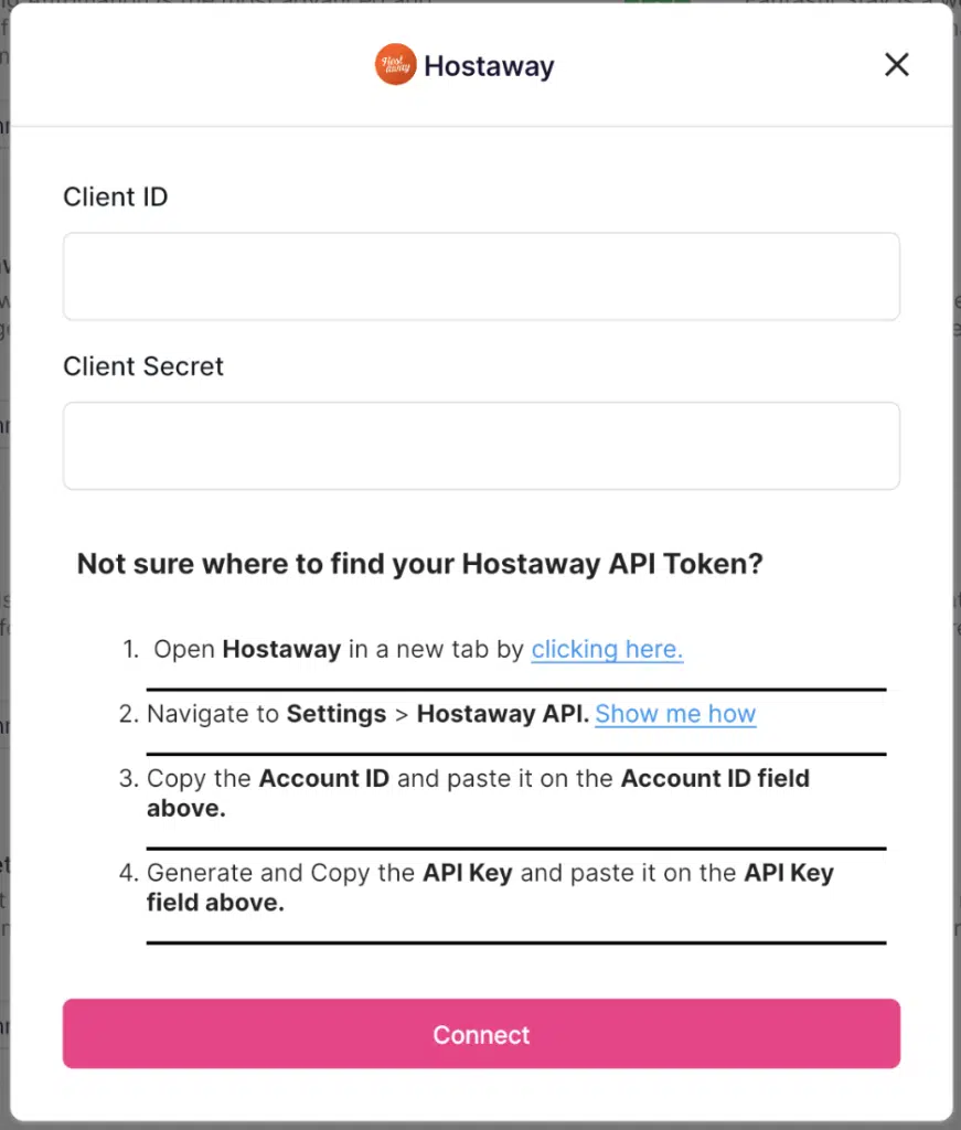- 单击“连接”以使用帐户 ID 和 API 密钥创建唯一的 API 密钥。